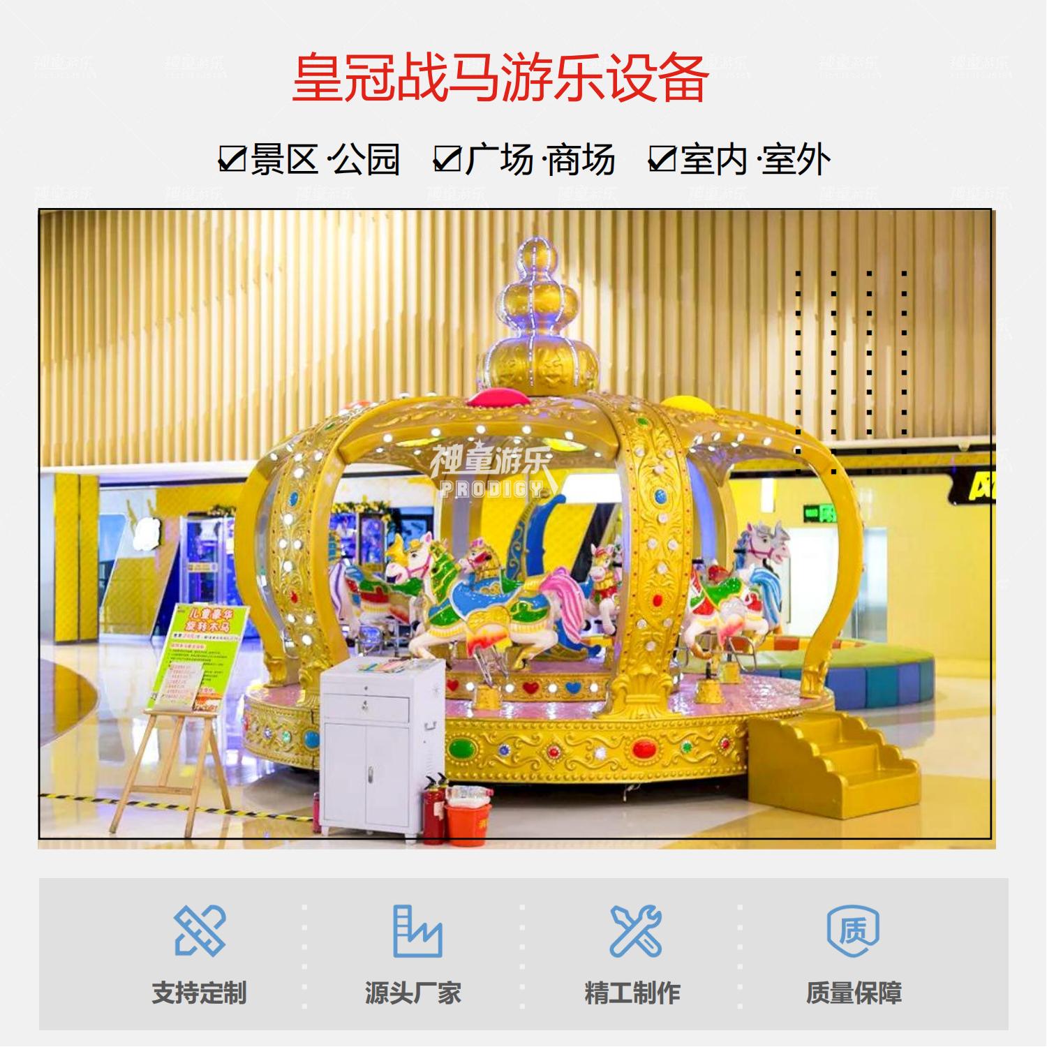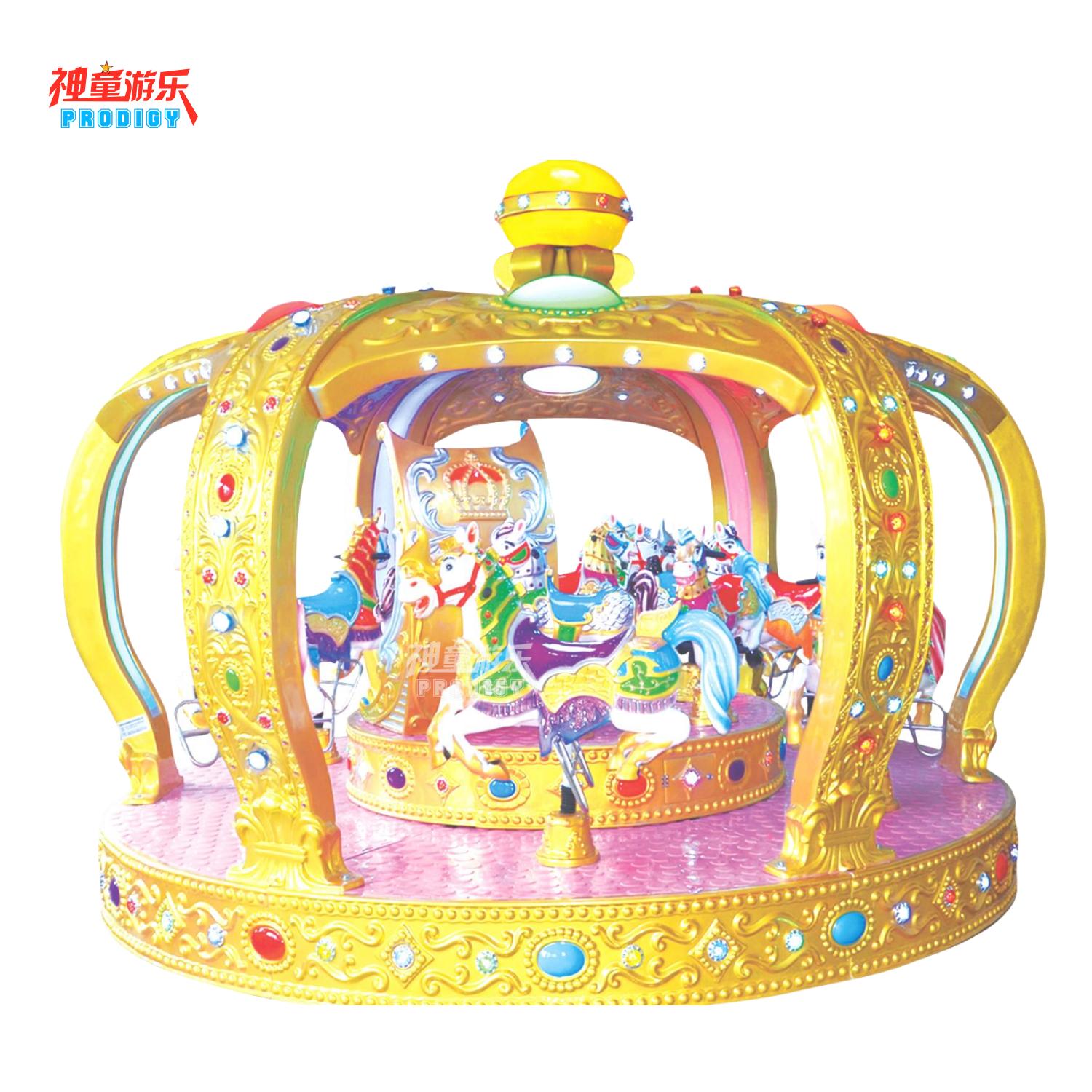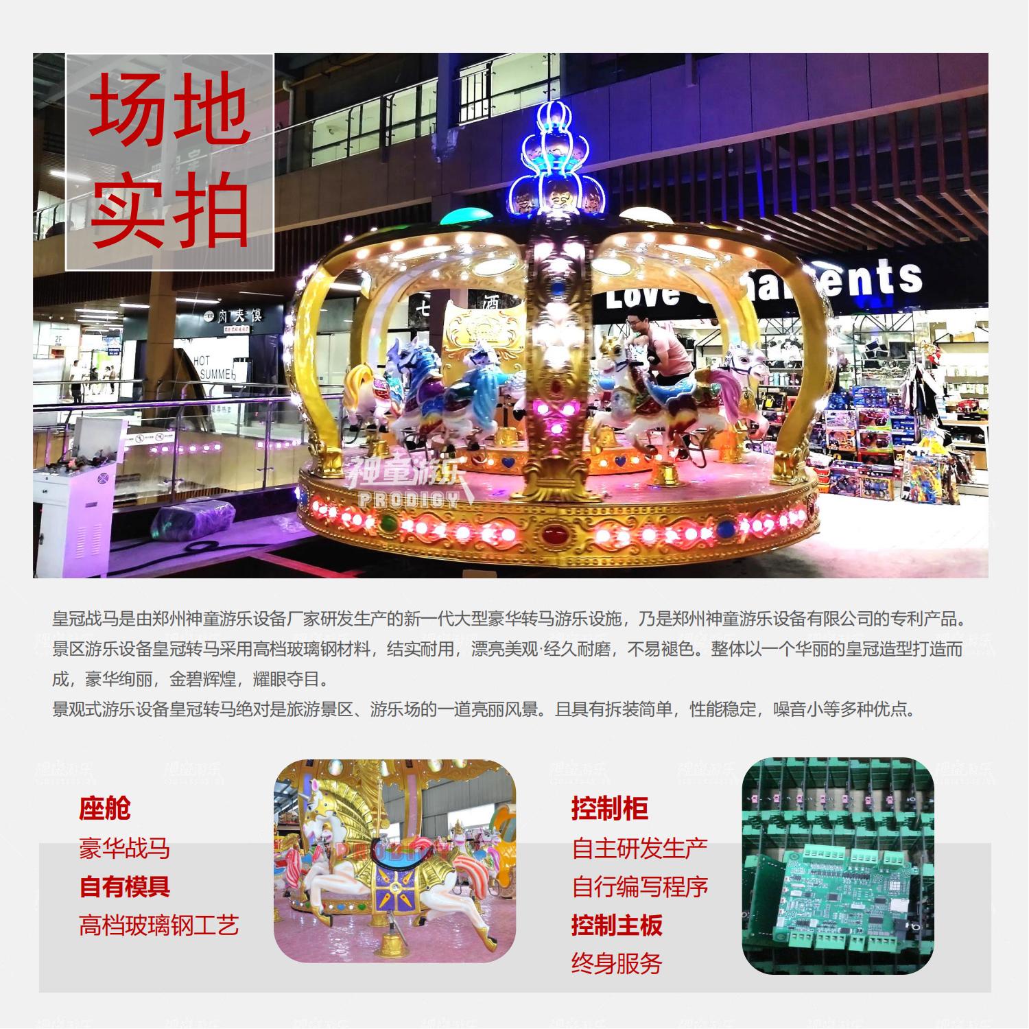 皇冠戰(zhàn)馬是由鄭州神童游樂設備廠家研發(fā)生產的新一代大型豪華轉馬游樂設施,乃是鄭州神童游樂設備有限公司的專利產品。景區(qū)游樂設備皇冠轉馬采用高檔玻璃鋼材料,結實耐用,漂亮美觀·經(jīng)久耐磨,不易褪色。整體以一個華麗的皇冠造型打造而成,豪華絢麗,金碧輝煌,耀眼奪目。 景觀式游樂設備皇冠轉馬絕對是旅游景區(qū)、游樂場的一道亮麗風景。且具有拆裝簡單,性能穩(wěn)定,噪音小等多種優(yōu)點。
