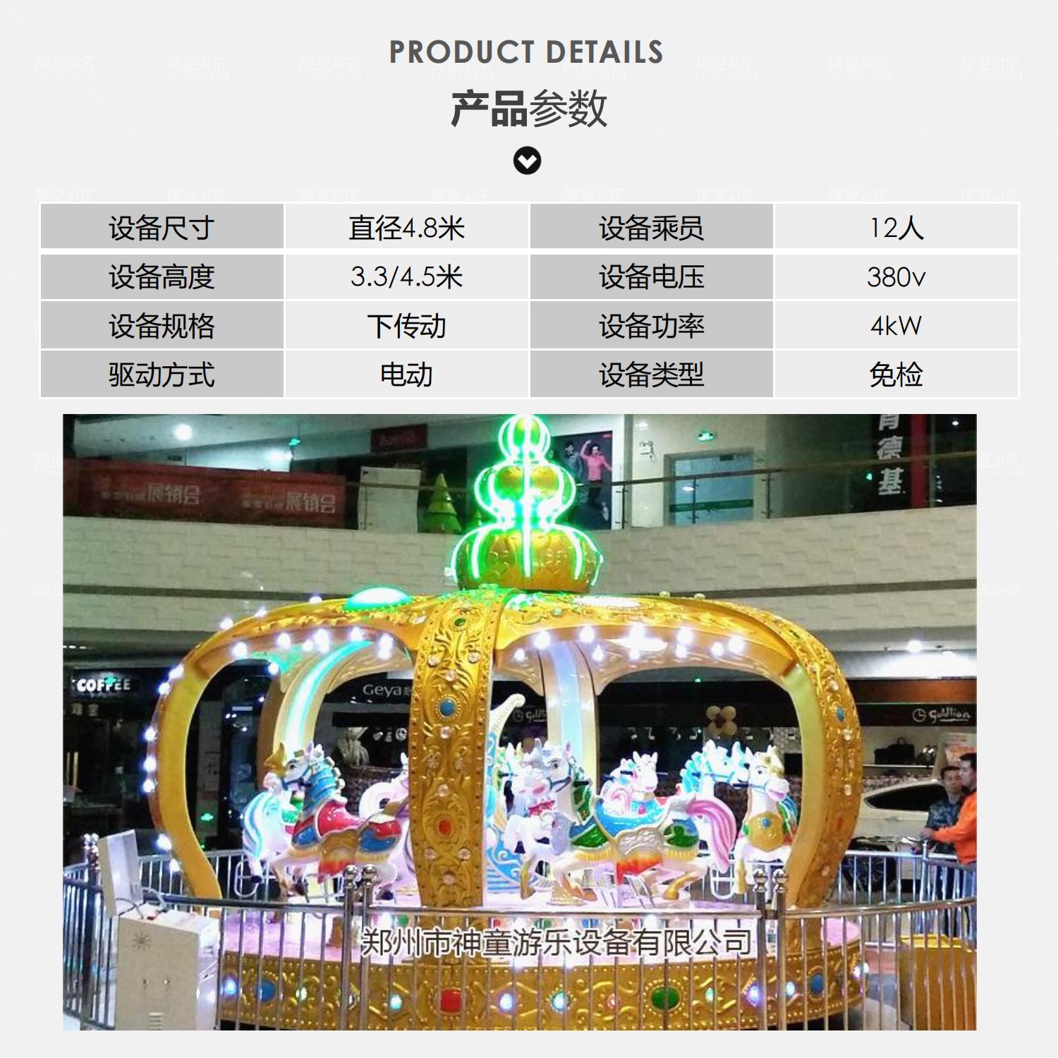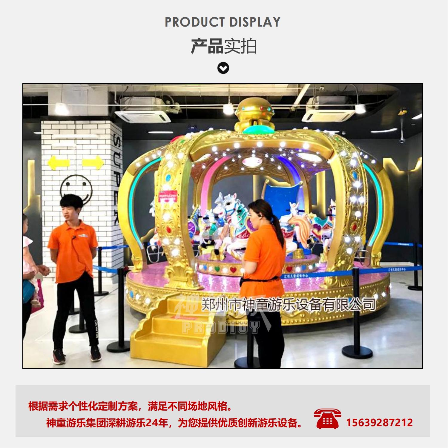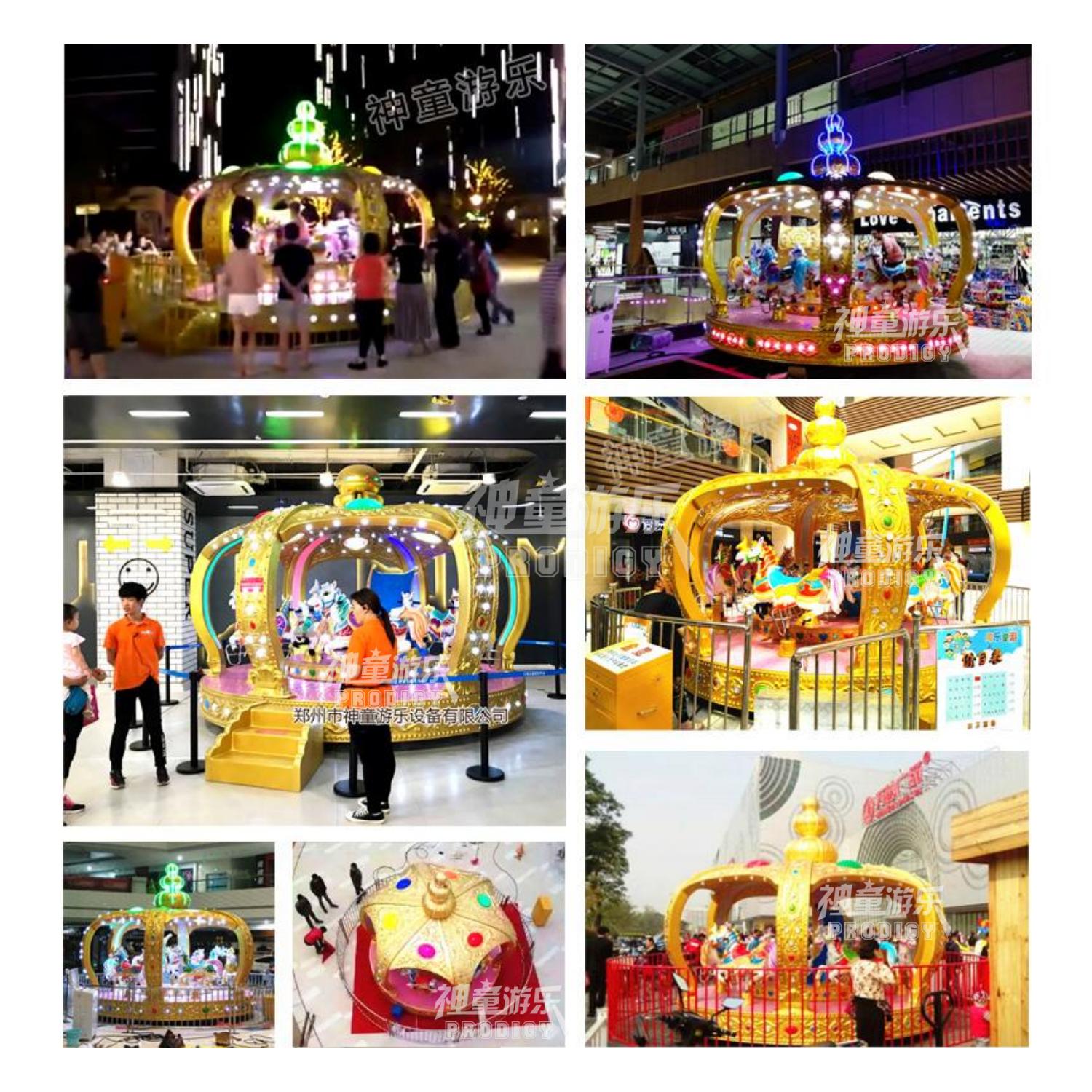 皇冠戰(zhàn)馬是由鄭州神童游樂設備廠家研發(fā)生產的新一代大型豪華轉馬游樂設施,乃是鄭州神童游樂設備有限公司的專利產品。景區(qū)游樂設備皇冠轉馬采用高檔玻璃鋼材料,結實耐用,漂亮美觀·經(jīng)久耐磨,不易褪色。整體以一個華麗的皇冠造型打造而成,豪華絢麗,金碧輝煌,耀眼奪目。 景觀式游樂設備皇冠轉馬絕對是旅游景區(qū)、游樂場的一道亮麗風景。且具有拆裝簡單,性能穩(wěn)定,噪音小等多種優(yōu)點。
