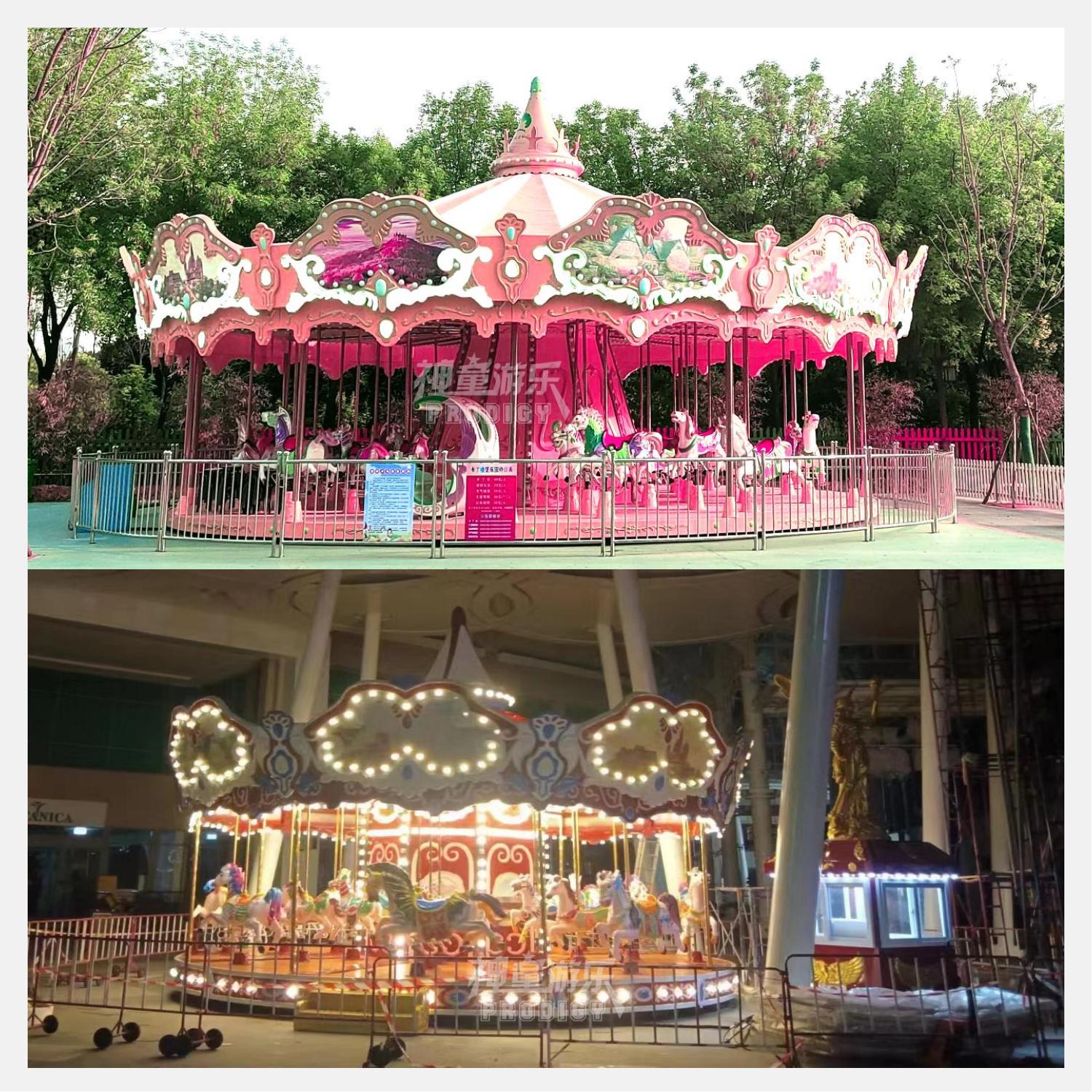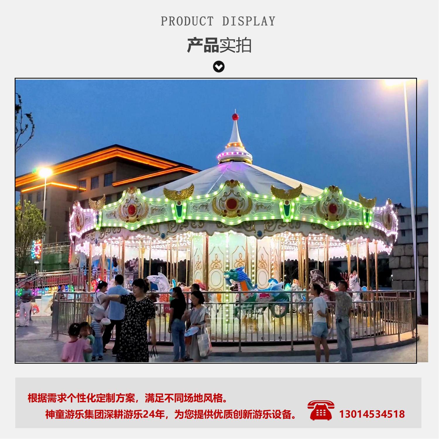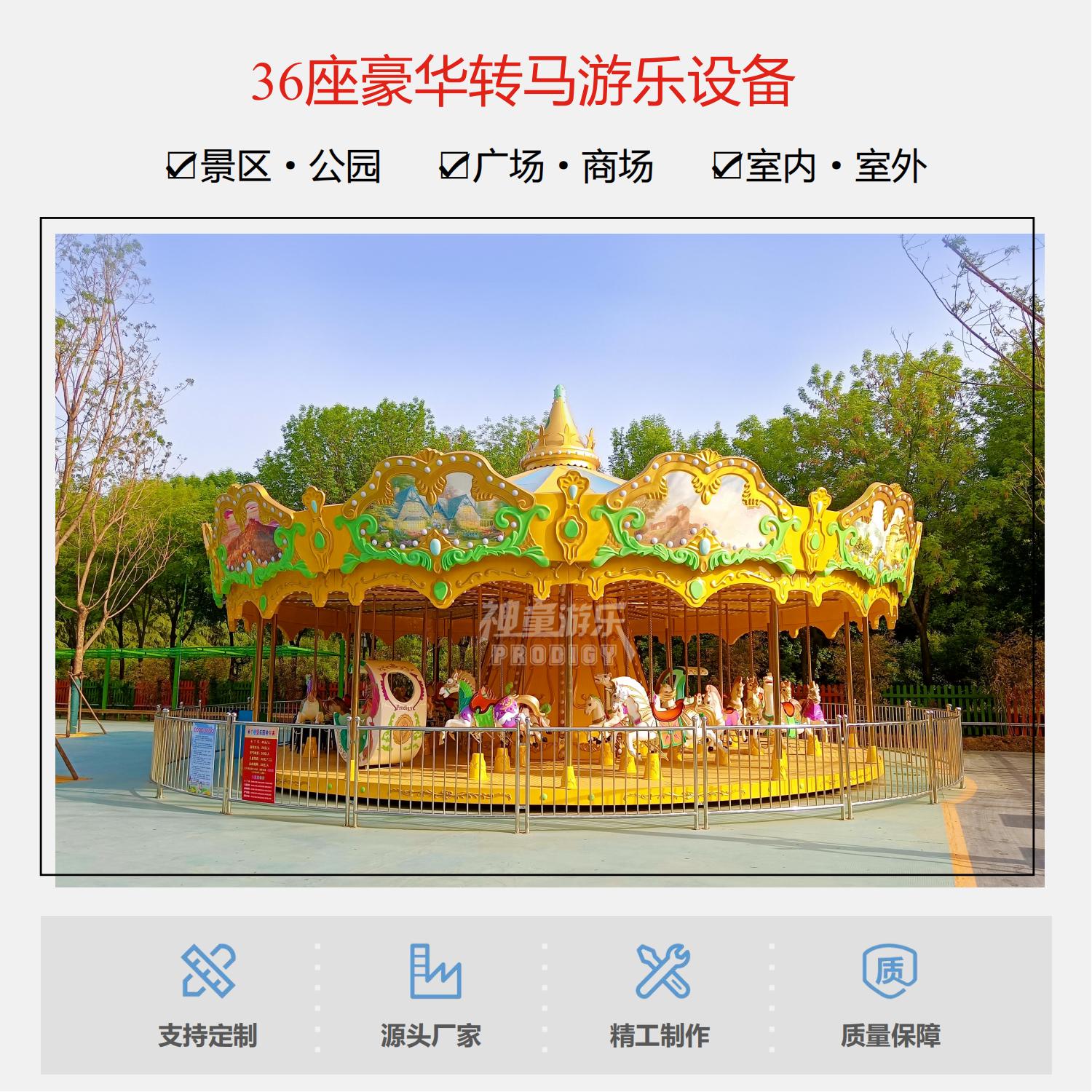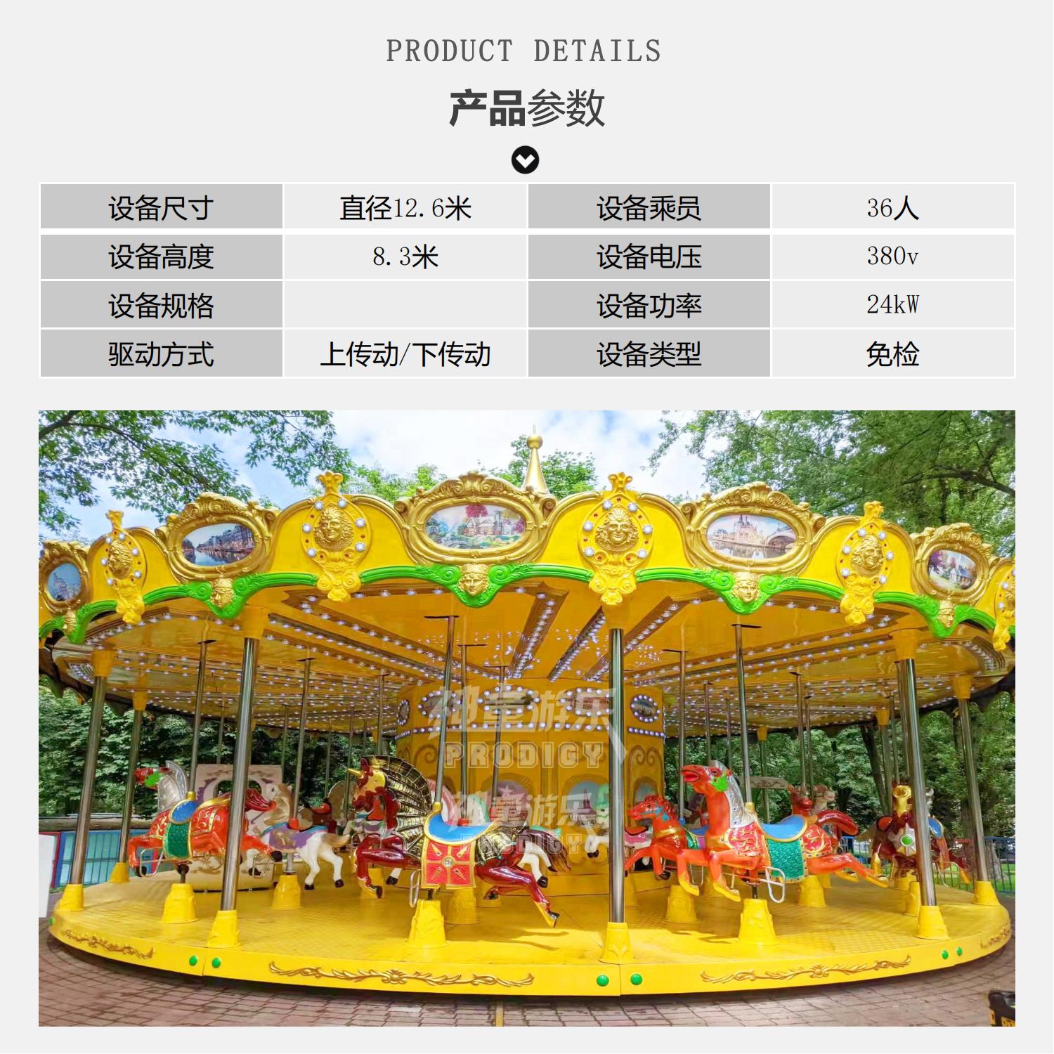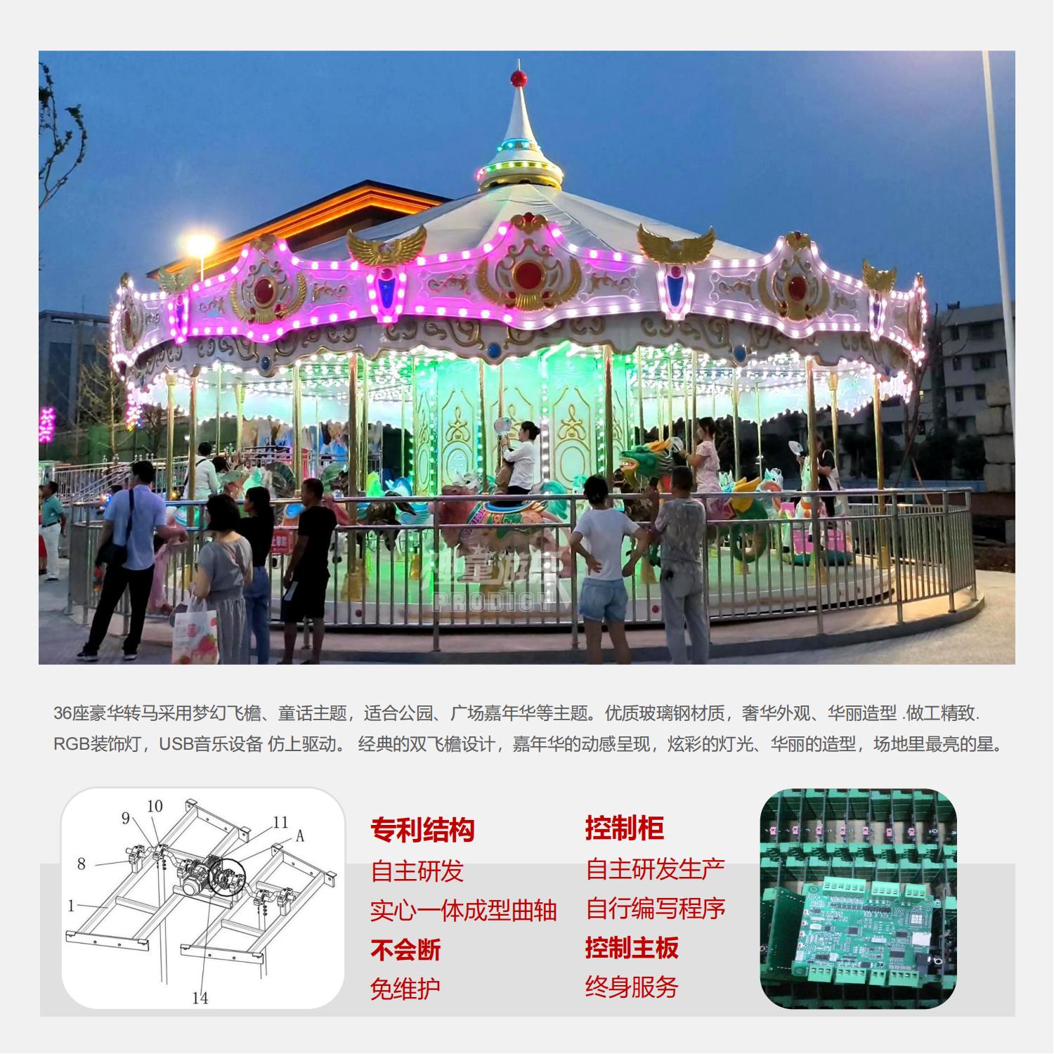 36座豪華轉(zhuǎn)馬采用夢幻飛檐、童話主題,適合公園、廣場嘉年華等主題。優(yōu)質(zhì)玻璃鋼材質(zhì),奢華外觀、華麗造型.做工精致. RGB裝飾燈,USB音樂設(shè)備 仿上驅(qū)動(dòng)。 經(jīng)典的雙飛檐設(shè)計(jì),嘉年華的動(dòng)感呈現(xiàn),炫彩的燈光、華麗的造型,場地里最亮的星。