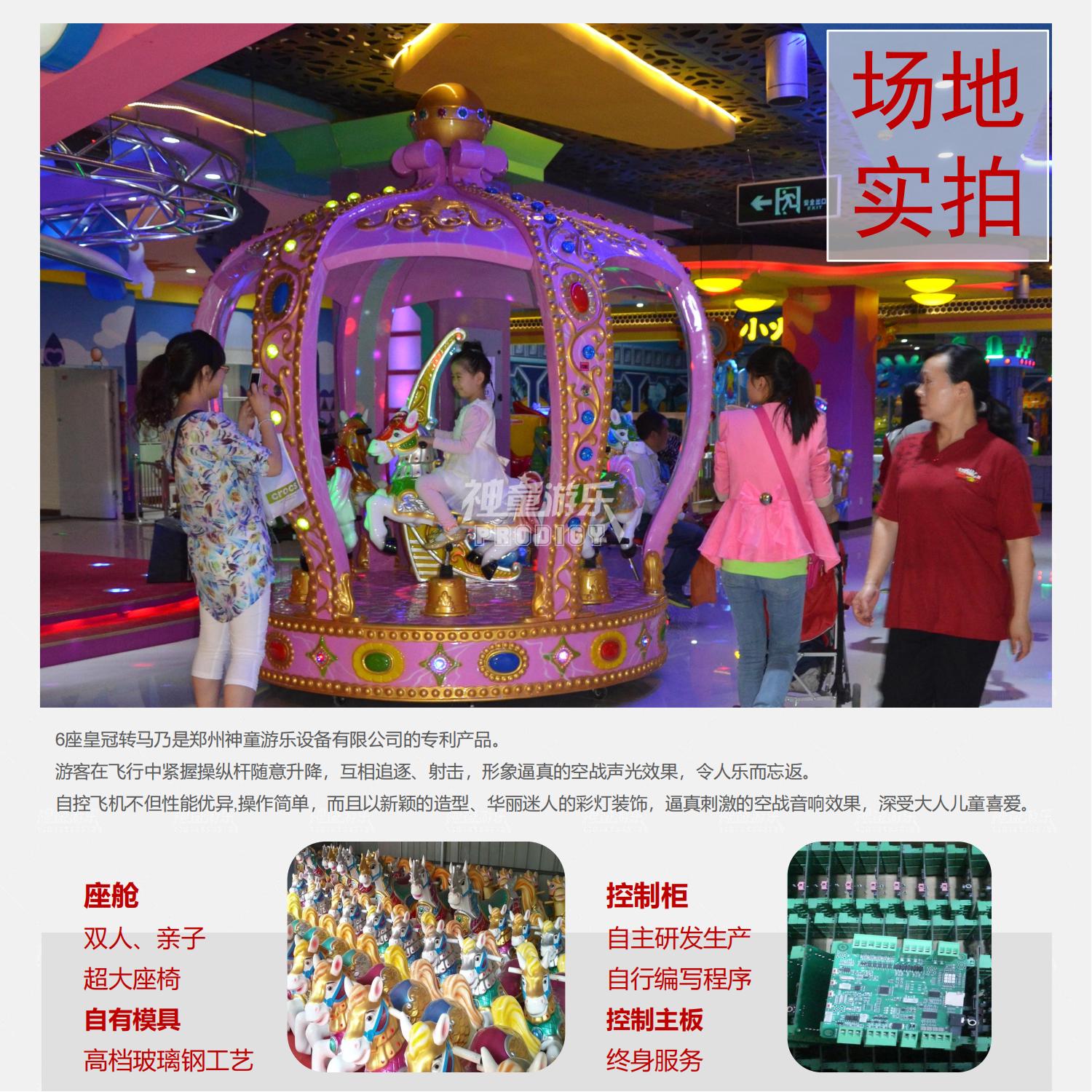 6座皇冠轉(zhuǎn)馬乃是鄭州神童游樂設(shè)備有限公司的專利產(chǎn)品。 游客在飛行中緊握操縱桿隨意升降,互相追逐、射擊,形象逼真的空戰(zhàn)聲光效果,令人樂而忘返。 自控飛機(jī)不但性能優(yōu)異,操作簡單,而且以新穎的造型、華麗迷人的彩燈裝飾,逼真刺激的空戰(zhàn)音響效果,深受大人兒童喜愛。