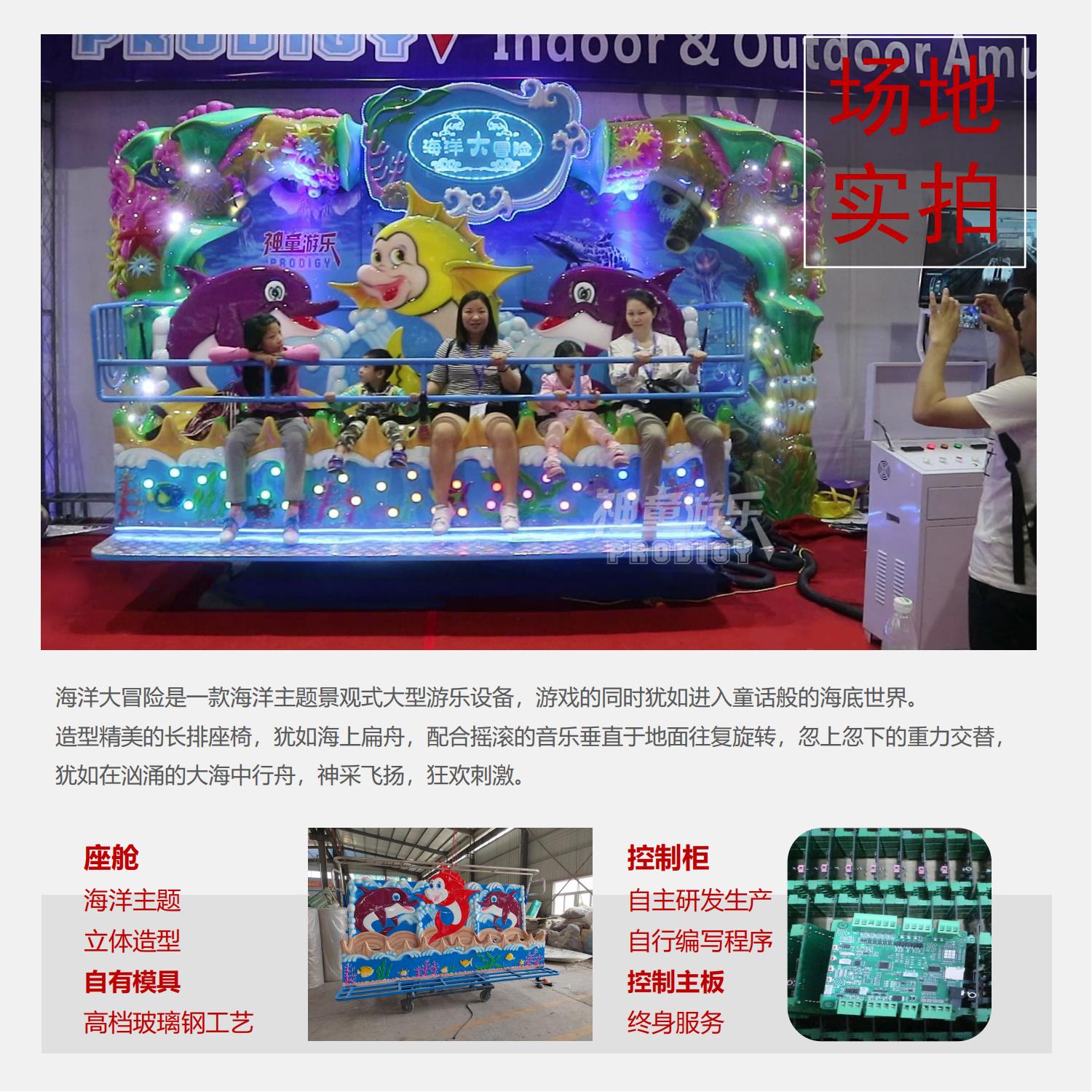 海洋大冒險是一款海洋主題景觀式大型游樂設(shè)備,游戲的同時猶如進(jìn)入童話般的海底世界。造型精美的長排座椅,猶如海上扁舟,配合搖滾的音樂垂直于地面往復(fù)旋轉(zhuǎn),忽上忽下的重力交替猶如在洶涌的大海中行舟,神采飛揚,狂歡刺激。